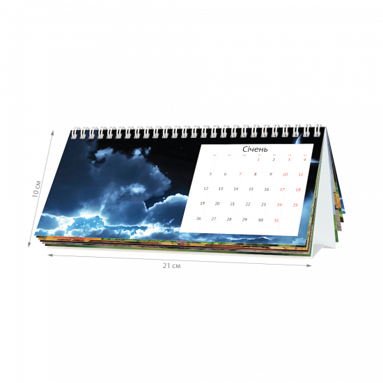 Зображення календаря наведено як приклад. Календар виготовляється за індивідуальним макетом із будь-якими зображеннями. Якщо у вас немає готового до друку макета, виберіть опцію «Необхідно розробити новий макет» у пункті «Стан макета».